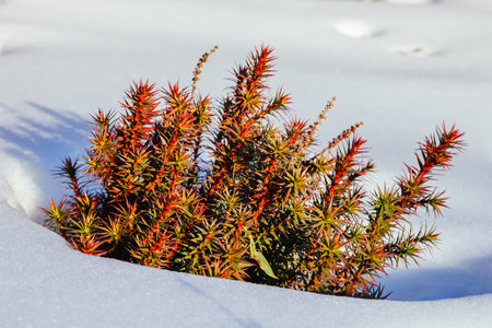 The coastal Crowberry Forest in Mrzezyno, on the Baltic Sea, Poland. The Black Crowberry (Empetrum nigrum L.) is a protected species of shrub. Close-up.