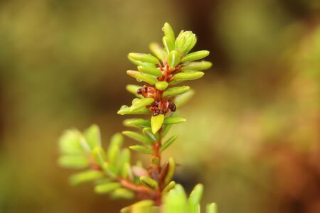 Macro of young blossoms of Empetrum nigrum, the crowberry.