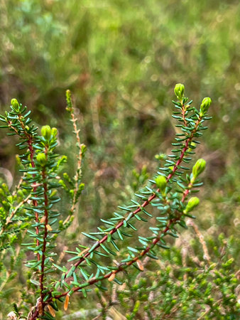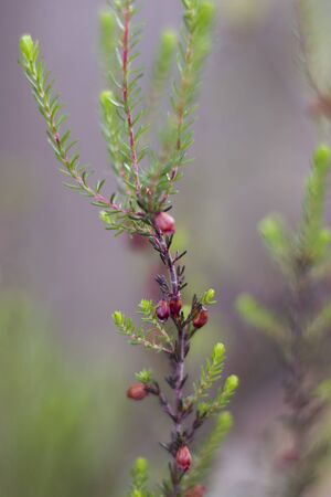 Purple heather not yet flowering close up texture