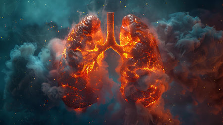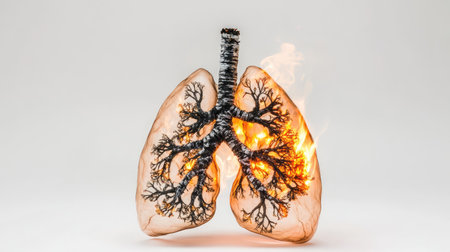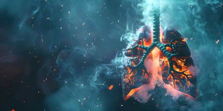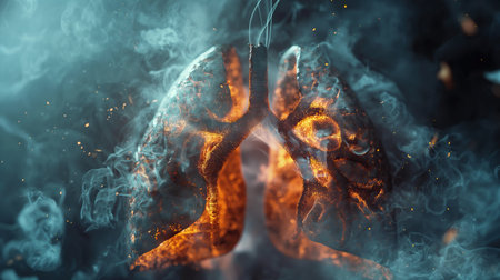 Human lungs with smoke and fire. 3D illustration. Conceptual image