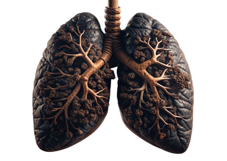 A diseased human lung blackened by years of tobacco use, symbolizing respiratory harm and health risk