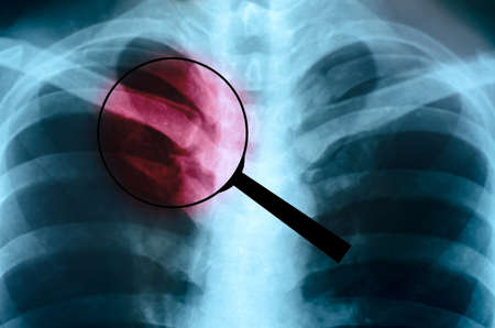 Lungs on X-ray film roentgen, medical background - pneumonia and tuberculosis disease concept