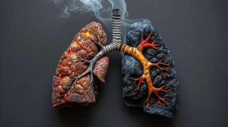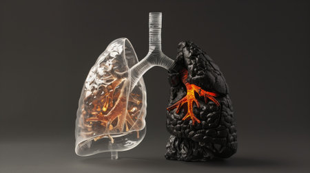 A pair of healthy and smoker's lungs side by side, highlighting the severe damage caused by smoking