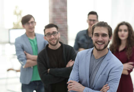 young ambitious cheerful corporate people are posing to the camera. collaboration. success