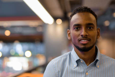 Portrait of handsome black African businessman inside shopping mall