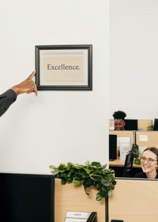 African American man leading a diverse group of business professionals in a modern office setting. Concept Corporate Leadership, Diversity in Business, Modern Office Environment