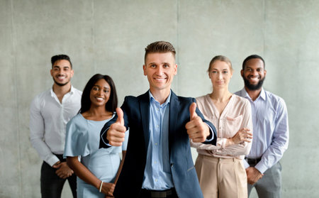 Multiethnic Team of Business Professionals Smiling Together in an Office Setting