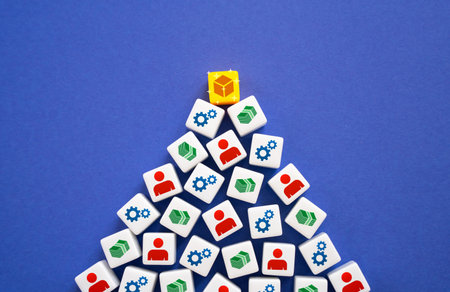 Blocks connected by lines form a pyramid of company hierarchy. The business concept is evolving