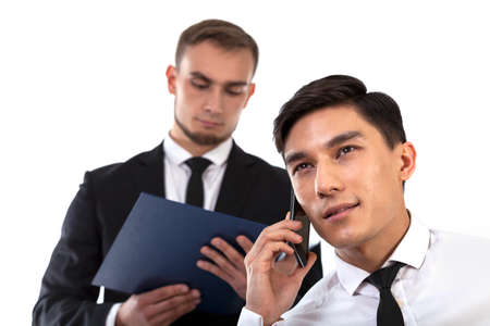 Business partner consulting new deal by phone