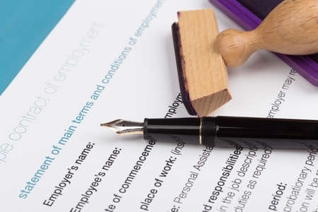 employment contract with fountain pen and stamp