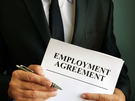 Man is holding Employment Agreement and pen.