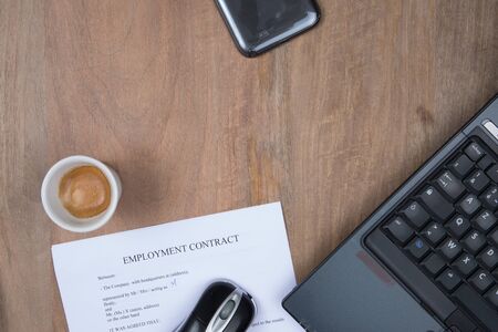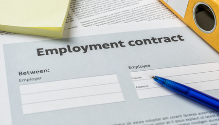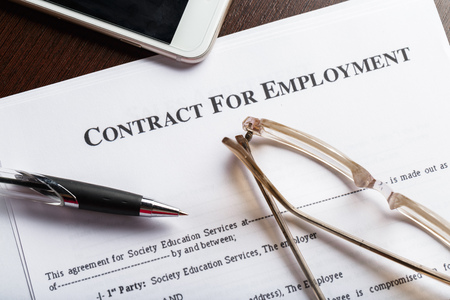 Legal document Employment Contract on paper close up.