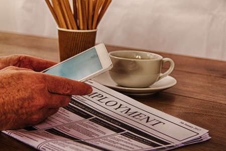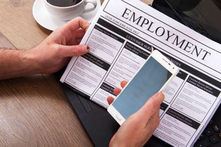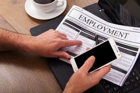 Searching for a new job or employment in a newspaper