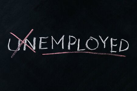 Turning the word Unemployed into Employed on chalkboard, business concept.