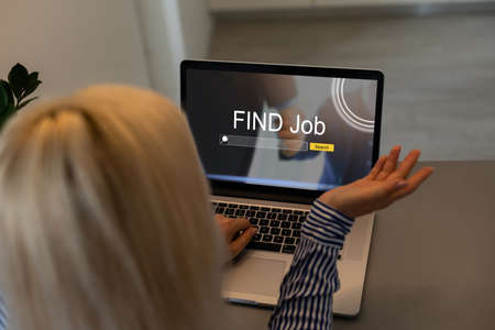 A young woman with a laptop, woman looking for work