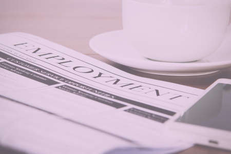 Searching for a new job or employment in a newspaper Vintage Retro Filter.