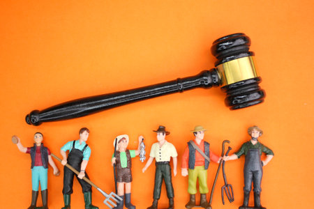 miniature of a laborer with a judge's hammer. the concept of labor laws. concept of labor law