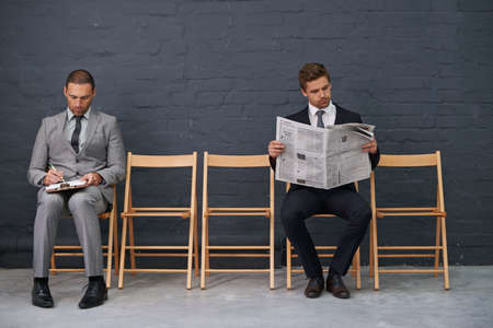 This could change our lives. Shot of a group of new employees waiting in a line to complete their interview.