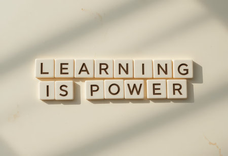 A close-up view of alphabet tiles spelling Learning is Power, conveying a motivational message about the importance of education and personal growth.