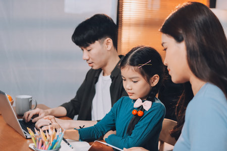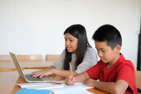 asian boy girl student studying learning lesson online. remote meeting distance education at home