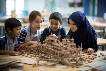 portraits of Indonesian primary school students have a discussion