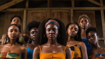 Group of 5 African American minority young women who are ready for work or relaxing