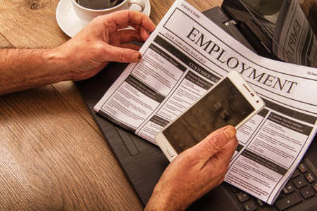 Searching for a new job or employment in a newspaper Vintage Retro Filter.