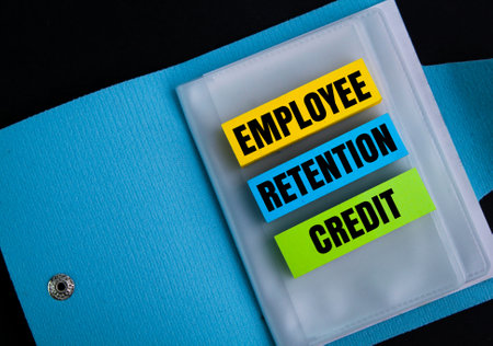 colored paper with the word Employee Retention Credit. the concept of employee salary retention