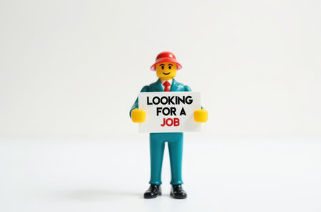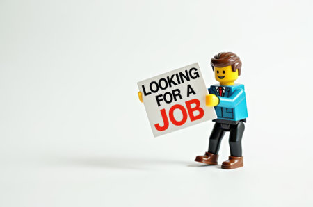 toy man holding a sign with the text (I'm looking for a job) on a white background