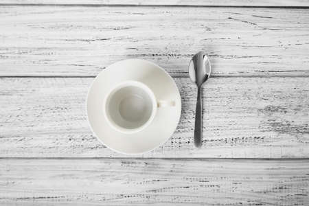 Dirty Cup After Drinking Coffee on a White Background . Concept for Ending a Meeting or Something Else. Mess on the Table after Breakfast with Dirty Mug White Porcelain Cup