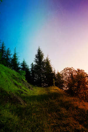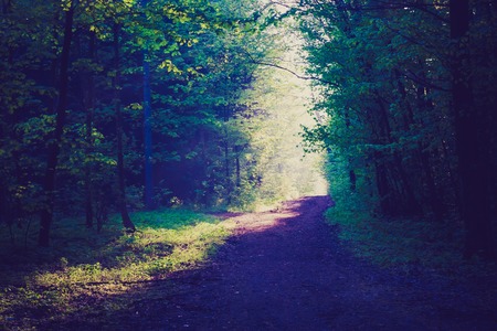 Beautiful polish forest landscape. Photo with vintage mood effect.