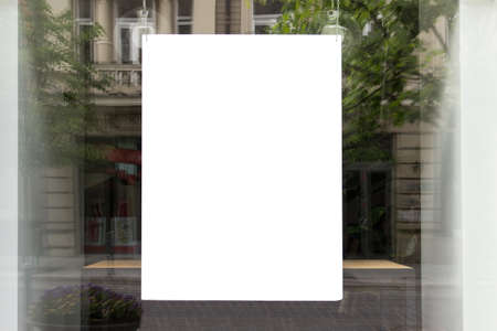 Blank Shop Door Signboard with Free Space for Your Design on a glass door background. 3d Rendering