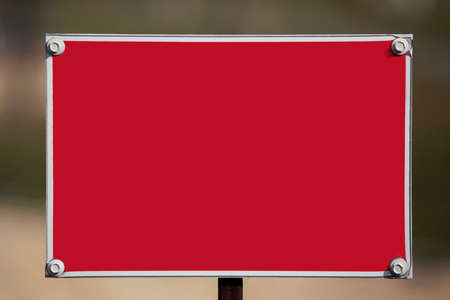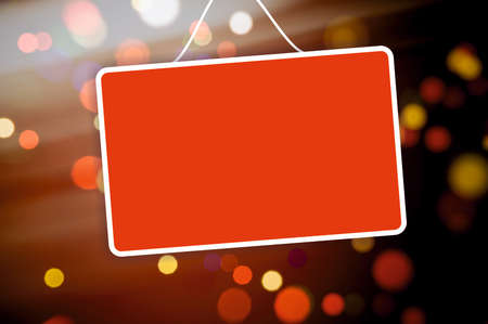 A plain red rectangular tag hangs from an orange string, set against a dark background with intense red vertical shadows