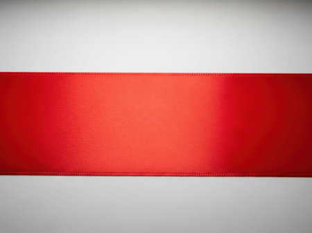 This image features a single, horizontal red ribbon with a smooth gradient effect, isolated against a white background. The ribbon is centrally positioned and spans the width of the image, creating a striking contrast with the plain white backdrop. Ideal for various design and decorative purposes.