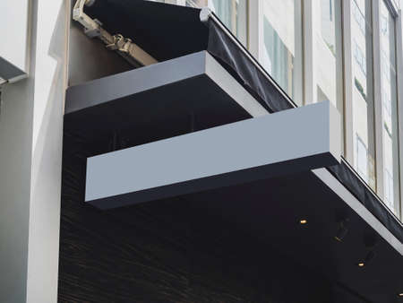 Mock up Black box Blank signage Shop Sign logo hanging exterior building