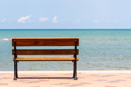 The bench is at the beach with the beautiful view. Use for the pretty view. Looks like lonely .but its good for some one need to relaxing to sit and look at the beach.