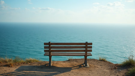 Empty Bench Overlooking Blue Ocean on a Sunny Day
