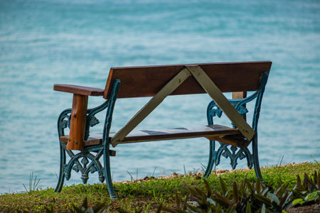 Wooden bench on the coast of Black Sea in Ordu, Turkey