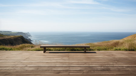 Generative AI : Wooden bench in Loiba cliffs Ortigueira Galicia Spain