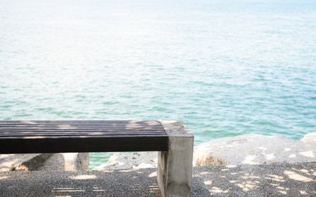 Empty bench by the sea or lake. Bench overlooking the sea.