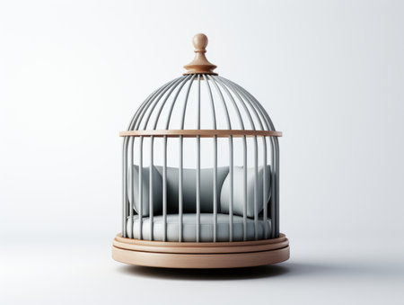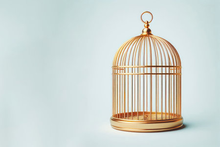 A golden cage on a clean background. Space for text