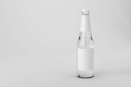 Clear glass drink soda clean water with blank label. Mock up template presentation. 3d rendering illustration.