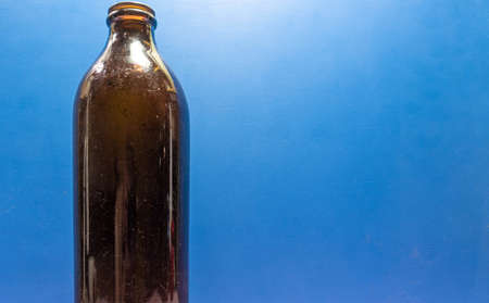 Photo of glass bottle neck. blue background.