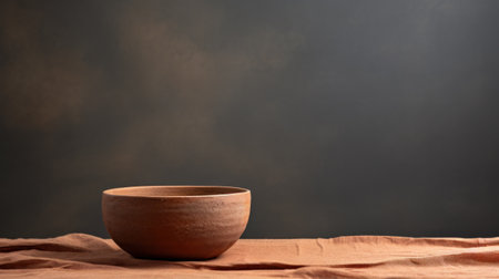 A brown bowl sitting on a cloth with some sort of background, AI