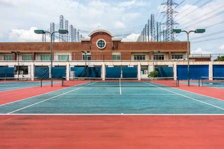 Green Tennis Court Arena. View from the bird's flight. Aerial photography. Urban city town in Asia.