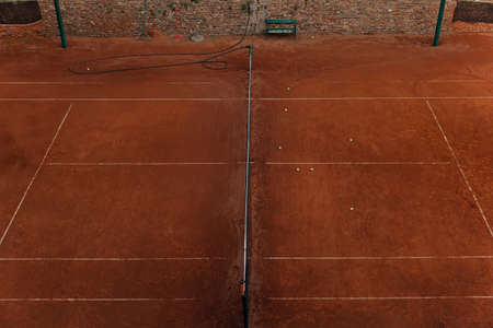 Image of a tennis court with a stretched net. Sports concept. Mixed media