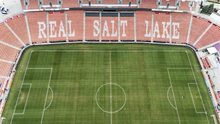 Aerial view of America First Field, home of the Real Salt Lake and National Women’s Soccer League Club, Utah Royals FC.