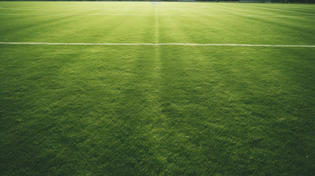 A close-up view of a green grass field displays a white painted line. The composition features a natural outdoor setting, likely during the golden hour, with warm hues. This image could be used for various commercial or editorial purposes related to sports, landscapes, or leisure activities.