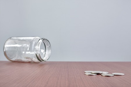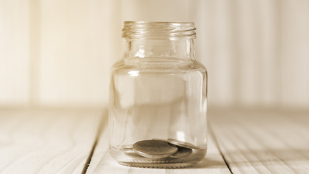 Glass jar with coins placed on white background isolated concept for saving money to keep in reserve for emergency expenses.