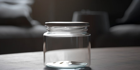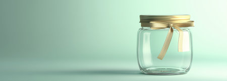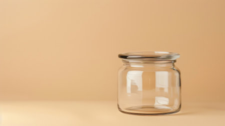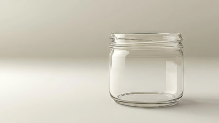 Empty open jar on smooth background with soft studio lighting, highlighting glass texture and reflections for clean composition